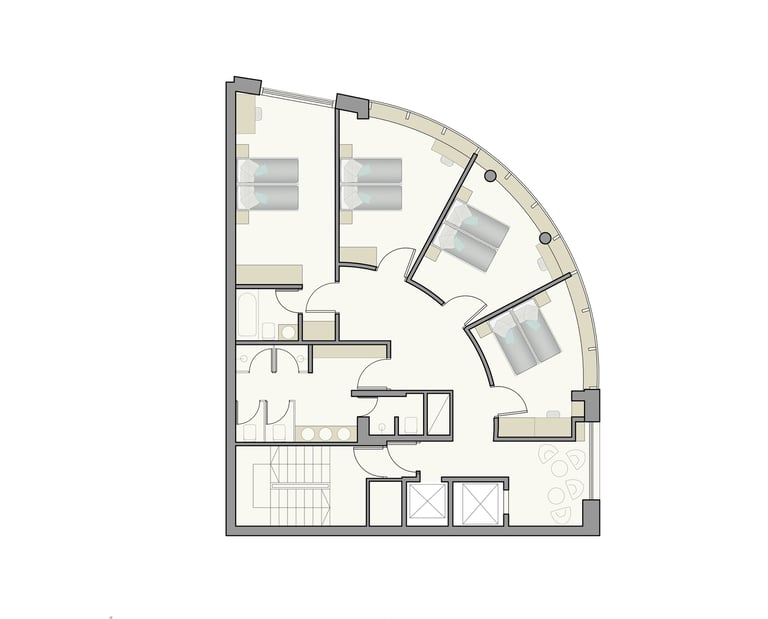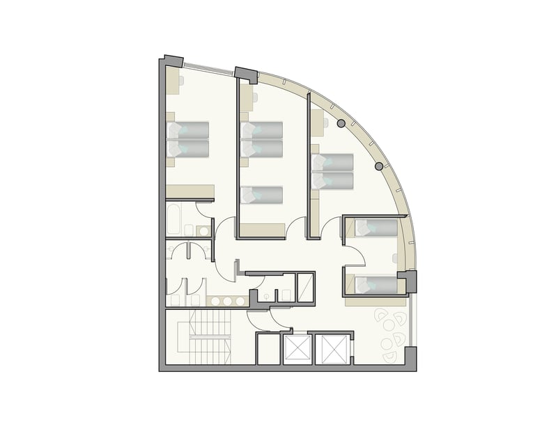 El proyecto realizado con el estudio NyMz, consistió en la transformación de un departamento de oficinas en una residencia universitaria, adaptada a las necesidades de estudiantes y con una distribución eficiente para maximizar su capacidad habitacional. El cliente buscaba una solución práctica y funcional, con espacio para albergar hasta 9 camas distribuidas en 4 dormitorios, además de baños comunes compartidos.